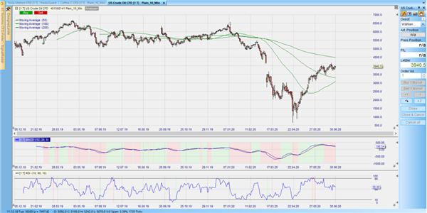CFD auf WTI Öl im Tageschart   – aus der Nanotrader Trading-Plattform.